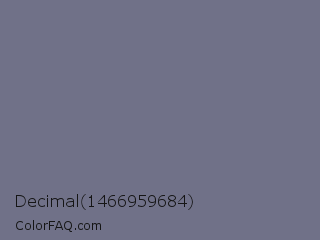 Decimal 1466959684 Color is a normal blue color and the nearest color is Storm Gray #717486. Hex code #707188 and RGB value is rgb(112,113,136). In RGB color space, this color is composed of 44% red, 44% green, 53% blue, In CMYK color space, this color is composed of 18% cyan, 17% magenta, 0% yellow , 47% black , In HSL color space, this color has a hue angle of 238° , 10% saturation and 49% lightness.