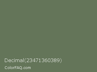 Decimal 23471360389 Color is a normal green color and the nearest color is Willow Grove #65745d. Hex code #647559 and RGB value is rgb(100,117,89). In RGB color space, this color is composed of 39% red, 46% green, 35% blue, In CMYK color space, this color is composed of 15% cyan, 0% magenta, 24% yellow , 54% black , In HSL color space, this color has a hue angle of 96° , 14% saturation and 40% lightness.