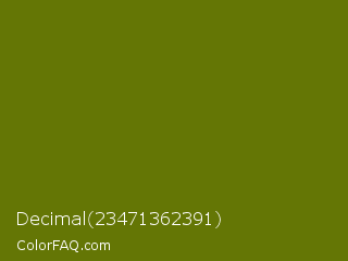 Decimal 23471362391 Color is a dark yellow color and the nearest color is Bronze Yellow #737000. Hex code #647605 and RGB value is rgb(100,118,5). In RGB color space, this color is composed of 39% red, 46% green, 2% blue, In CMYK color space, this color is composed of 15% cyan, 0% magenta, 96% yellow , 54% black , In HSL color space, this color has a hue angle of 70° , 92% saturation and 24% lightness.