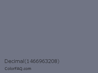 Decimal 1466963208 Color is a normal blue color and the nearest color is Storm Gray #717486. Hex code #707484 and RGB value is rgb(112,116,132). In RGB color space, this color is composed of 44% red, 45% green, 52% blue, In CMYK color space, this color is composed of 15% cyan, 12% magenta, 0% yellow , 48% black , In HSL color space, this color has a hue angle of 228° , 8% saturation and 48% lightness.