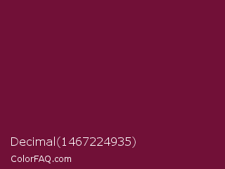 Decimal 1467224935 Color is a dark rose color and the nearest color is Claret #7f1734. Hex code #711037 and RGB value is rgb(113,16,55). In RGB color space, this color is composed of 44% red, 6% green, 22% blue, In CMYK color space, this color is composed of 0% cyan, 86% magenta, 51% yellow , 56% black , In HSL color space, this color has a hue angle of 336° , 75% saturation and 25% lightness.
