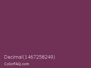 Decimal 1467258249 Color is a normal magenta color and the nearest color is Finn #692d54. Hex code #713055 and RGB value is rgb(113,48,85). In RGB color space, this color is composed of 44% red, 19% green, 33% blue, In CMYK color space, this color is composed of 0% cyan, 58% magenta, 25% yellow , 56% black , In HSL color space, this color has a hue angle of 326° , 40% saturation and 32% lightness.