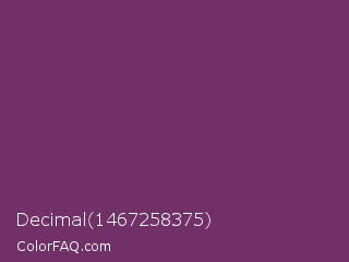 Decimal 1467258375 Color is a normal magenta color and the nearest color is Byzantium #702963. Hex code #713067 and RGB value is rgb(113,48,103). In RGB color space, this color is composed of 44% red, 19% green, 40% blue, In CMYK color space, this color is composed of 0% cyan, 58% magenta, 9% yellow , 56% black , In HSL color space, this color has a hue angle of 309° , 40% saturation and 32% lightness.