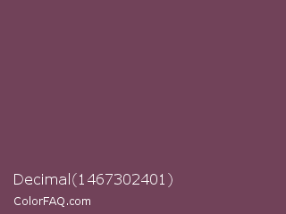 Decimal 1467302401 Color is a normal rose color and the nearest color is Cosmic #76395d. Hex code #714259 and RGB value is rgb(113,66,89). In RGB color space, this color is composed of 44% red, 26% green, 35% blue, In CMYK color space, this color is composed of 0% cyan, 42% magenta, 21% yellow , 56% black , In HSL color space, this color has a hue angle of 331° , 26% saturation and 35% lightness.