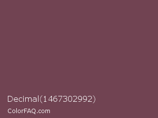 Decimal 1467302992 Color is a normal rose color and the nearest color is Deep Tuscan Red #66424d. Hex code #714352 and RGB value is rgb(113,67,82). In RGB color space, this color is composed of 44% red, 26% green, 32% blue, In CMYK color space, this color is composed of 0% cyan, 41% magenta, 27% yellow , 56% black , In HSL color space, this color has a hue angle of 340° , 26% saturation and 35% lightness.