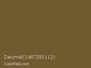 Decimal 1467351112 Color is a normal orange color and the nearest color is Shingle Fawn #6b4e31. Hex code #715930 and RGB value is rgb(113,89,48). In RGB color space, this color is composed of 44% red, 35% green, 19% blue, In CMYK color space, this color is composed of 0% cyan, 21% magenta, 58% yellow , 56% black , In HSL color space, this color has a hue angle of 38° , 40% saturation and 32% lightness.