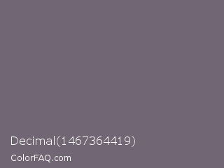 Decimal 1467364419 Color is a normal purple color and the nearest color is Old Lavender #796878. Hex code #716673 and RGB value is rgb(113,102,115). In RGB color space, this color is composed of 44% red, 40% green, 45% blue, In CMYK color space, this color is composed of 2% cyan, 11% magenta, 0% yellow , 55% black , In HSL color space, this color has a hue angle of 291° , 6% saturation and 43% lightness.