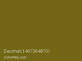 Decimal 1467364870 Color is a dark yellow color and the nearest color is Olivetone #716e10. Hex code #716716 and RGB value is rgb(113,103,22). In RGB color space, this color is composed of 44% red, 40% green, 9% blue, In CMYK color space, this color is composed of 0% cyan, 9% magenta, 81% yellow , 56% black , In HSL color space, this color has a hue angle of 53° , 67% saturation and 26% lightness.
