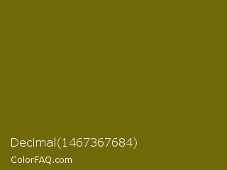 Decimal 1467367684 Color is a dark yellow color and the nearest color is Spicy Mustard #74640d. Hex code #716908 and RGB value is rgb(113,105,8). In RGB color space, this color is composed of 44% red, 41% green, 3% blue, In CMYK color space, this color is composed of 0% cyan, 7% magenta, 93% yellow , 56% black , In HSL color space, this color has a hue angle of 55° , 87% saturation and 24% lightness.