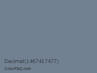 Decimal 1467417477 Color is a normal blue color and the nearest color is Slate Gray #708090. Hex code #718191 and RGB value is rgb(113,129,145). In RGB color space, this color is composed of 44% red, 51% green, 57% blue, In CMYK color space, this color is composed of 22% cyan, 11% magenta, 0% yellow , 43% black , In HSL color space, this color has a hue angle of 210° , 13% saturation and 51% lightness.