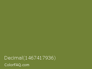 Decimal 1467417936 Color is a normal lime color and the nearest color is Crete #737829. Hex code #718236 and RGB value is rgb(113,130,54). In RGB color space, this color is composed of 44% red, 51% green, 21% blue, In CMYK color space, this color is composed of 13% cyan, 0% magenta, 58% yellow , 49% black , In HSL color space, this color has a hue angle of 73° , 41% saturation and 36% lightness.