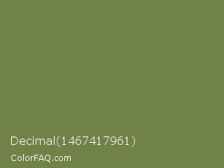 Decimal 1467417961 Color is a normal lime color and the nearest color is Go Ben #726d4e. Hex code #718249 and RGB value is rgb(113,130,73). In RGB color space, this color is composed of 44% red, 51% green, 29% blue, In CMYK color space, this color is composed of 13% cyan, 0% magenta, 44% yellow , 49% black , In HSL color space, this color has a hue angle of 78° , 28% saturation and 40% lightness.