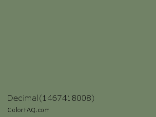 Decimal 1467418008 Color is a normal green color and the nearest color is Limed Ash #747d63. Hex code #718266 and RGB value is rgb(113,130,102). In RGB color space, this color is composed of 44% red, 51% green, 40% blue, In CMYK color space, this color is composed of 13% cyan, 0% magenta, 22% yellow , 49% black , In HSL color space, this color has a hue angle of 96° , 12% saturation and 45% lightness.
