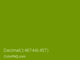 Decimal 1467441457 Color is a dark lime color and the nearest color is Limeade #6f9d02. Hex code #719803 and RGB value is rgb(113,152,3). In RGB color space, this color is composed of 44% red, 60% green, 1% blue, In CMYK color space, this color is composed of 26% cyan, 0% magenta, 98% yellow , 40% black , In HSL color space, this color has a hue angle of 76° , 96% saturation and 30% lightness.