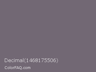 Decimal 1468175506 Color is a normal purple color and the nearest color is Old Lavender #796878. Hex code #726874 and RGB value is rgb(114,104,116). In RGB color space, this color is composed of 45% red, 41% green, 45% blue, In CMYK color space, this color is composed of 2% cyan, 10% magenta, 0% yellow , 55% black , In HSL color space, this color has a hue angle of 290° , 5% saturation and 43% lightness.