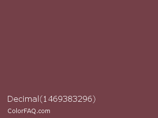 Decimal 1469383296 Color is a normal red color and the nearest color is Roast Coffee #704241. Hex code #744048 and RGB value is rgb(116,64,72). In RGB color space, this color is composed of 45% red, 25% green, 28% blue, In CMYK color space, this color is composed of 0% cyan, 45% magenta, 38% yellow , 55% black , In HSL color space, this color has a hue angle of 351° , 29% saturation and 35% lightness.