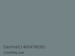 Decimal 1469478036 Color is a normal cyan color and the nearest color is Rolling Stone #747d83. Hex code #748386 and RGB value is rgb(116,131,134). In RGB color space, this color is composed of 45% red, 51% green, 53% blue, In CMYK color space, this color is composed of 13% cyan, 2% magenta, 0% yellow , 47% black , In HSL color space, this color has a hue angle of 190° , 7% saturation and 49% lightness.