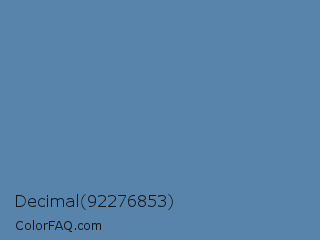 Decimal 92276853 Color is a normal blue color and the nearest color is Air Force Blue RAF #5d8aa8. Hex code #5883ab and RGB value is rgb(88,131,171). In RGB color space, this color is composed of 35% red, 51% green, 67% blue, In CMYK color space, this color is composed of 49% cyan, 23% magenta, 0% yellow , 33% black , In HSL color space, this color has a hue angle of 209° , 33% saturation and 51% lightness.