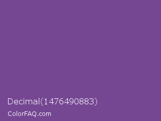 Decimal 1476490883 Color is a normal purple color and the nearest color is Affair #714693. Hex code #754793 and RGB value is rgb(117,71,147). In RGB color space, this color is composed of 46% red, 28% green, 58% blue, In CMYK color space, this color is composed of 20% cyan, 52% magenta, 0% yellow , 42% black , In HSL color space, this color has a hue angle of 276° , 35% saturation and 43% lightness.
