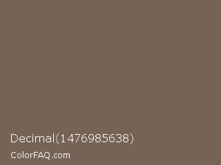 Decimal 1476985638 Color is a normal orange color and the nearest color is Coffee #706555. Hex code #766356 and RGB value is rgb(118,99,86). In RGB color space, this color is composed of 46% red, 39% green, 34% blue, In CMYK color space, this color is composed of 0% cyan, 16% magenta, 27% yellow , 54% black , In HSL color space, this color has a hue angle of 24° , 16% saturation and 40% lightness.