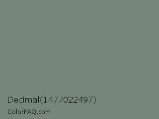 Decimal 1477022497 Color is a normal green color and the nearest color is Xanadu #738678. Hex code #768679 and RGB value is rgb(118,134,121). In RGB color space, this color is composed of 46% red, 53% green, 47% blue, In CMYK color space, this color is composed of 12% cyan, 0% magenta, 10% yellow , 47% black , In HSL color space, this color has a hue angle of 131° , 6% saturation and 49% lightness.