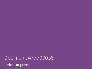Decimal 1477739058 Color is a normal purple color and the nearest color is Affair #714693. Hex code #774588 and RGB value is rgb(119,69,136). In RGB color space, this color is composed of 47% red, 27% green, 53% blue, In CMYK color space, this color is composed of 13% cyan, 49% magenta, 0% yellow , 47% black , In HSL color space, this color has a hue angle of 285° , 33% saturation and 40% lightness.