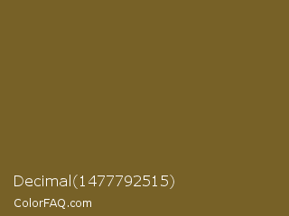 Decimal 1477792515 Color is a normal orange color and the nearest color is Kumera #886221. Hex code #776127 and RGB value is rgb(119,97,39). In RGB color space, this color is composed of 47% red, 38% green, 15% blue, In CMYK color space, this color is composed of 0% cyan, 18% magenta, 67% yellow , 53% black , In HSL color space, this color has a hue angle of 44° , 51% saturation and 31% lightness.