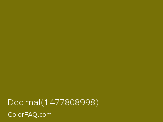 Decimal 1477808998 Color is a dark yellow color and the nearest color is Bronze Yellow #737000. Hex code #777106 and RGB value is rgb(119,113,6). In RGB color space, this color is composed of 47% red, 44% green, 2% blue, In CMYK color space, this color is composed of 0% cyan, 5% magenta, 95% yellow , 53% black , In HSL color space, this color has a hue angle of 57° , 90% saturation and 25% lightness.