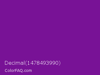 Decimal 1478493990 Color is a normal purple color and the nearest color is Seance #731e8f. Hex code #781296 and RGB value is rgb(120,18,150). In RGB color space, this color is composed of 47% red, 7% green, 59% blue, In CMYK color space, this color is composed of 20% cyan, 88% magenta, 0% yellow , 41% black , In HSL color space, this color has a hue angle of 286° , 79% saturation and 33% lightness.