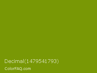 Decimal 1479541793 Color is a normal lime color and the nearest color is Limeade #6f9d02. Hex code #799805 and RGB value is rgb(121,152,5). In RGB color space, this color is composed of 47% red, 60% green, 2% blue, In CMYK color space, this color is composed of 20% cyan, 0% magenta, 97% yellow , 40% black , In HSL color space, this color has a hue angle of 73° , 94% saturation and 31% lightness.