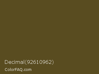 Decimal 92610962 Color is a dark yellow color and the nearest color is West Coast #625119. Hex code #594c20 and RGB value is rgb(89,76,32). In RGB color space, this color is composed of 35% red, 30% green, 13% blue, In CMYK color space, this color is composed of 0% cyan, 15% magenta, 64% yellow , 65% black , In HSL color space, this color has a hue angle of 46° , 47% saturation and 24% lightness.