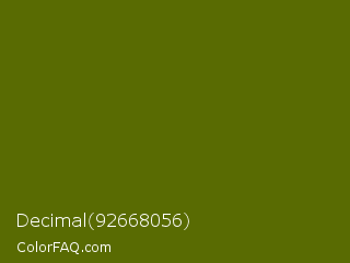 Decimal 92668056 Color is a very dark yellow color and the nearest color is Saratoga #555b10. Hex code #596b02 and RGB value is rgb(89,107,2). In RGB color space, this color is composed of 35% red, 42% green, 1% blue, In CMYK color space, this color is composed of 17% cyan, 0% magenta, 98% yellow , 58% black , In HSL color space, this color has a hue angle of 70° , 96% saturation and 21% lightness.