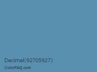 Decimal 92705927 Color is a normal blue color and the nearest color is Air Force Blue RAF #5d8aa8. Hex code #598faf and RGB value is rgb(89,143,175). In RGB color space, this color is composed of 35% red, 56% green, 69% blue, In CMYK color space, this color is composed of 49% cyan, 18% magenta, 0% yellow , 31% black , In HSL color space, this color has a hue angle of 202° , 35% saturation and 52% lightness.