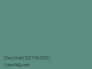 Decimal 92706455 Color is a normal cyan color and the nearest color is Wintergreen Dream #56887d. Hex code #599081 and RGB value is rgb(89,144,129). In RGB color space, this color is composed of 35% red, 56% green, 51% blue, In CMYK color space, this color is composed of 38% cyan, 0% magenta, 10% yellow , 44% black , In HSL color space, this color has a hue angle of 164° , 24% saturation and 46% lightness.