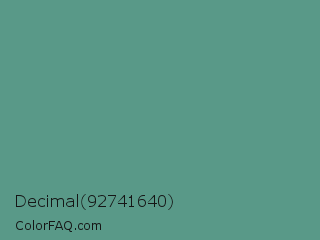 Decimal 92741640 Color is a normal cyan color and the nearest color is Patina #639a8f. Hex code #599988 and RGB value is rgb(89,153,136). In RGB color space, this color is composed of 35% red, 60% green, 53% blue, In CMYK color space, this color is composed of 42% cyan, 0% magenta, 11% yellow , 40% black , In HSL color space, this color has a hue angle of 164° , 26% saturation and 47% lightness.