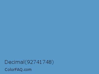 Decimal 92741748 Color is a normal blue color and the nearest color is Danube #6093d1. Hex code #5999ca and RGB value is rgb(89,153,202). In RGB color space, this color is composed of 35% red, 60% green, 79% blue, In CMYK color space, this color is composed of 56% cyan, 24% magenta, 0% yellow , 21% black , In HSL color space, this color has a hue angle of 206° , 52% saturation and 57% lightness.