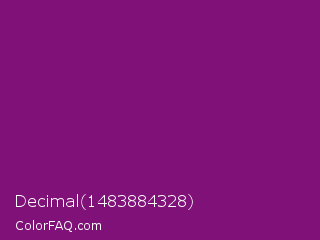 Decimal 1483884328 Color is a dark magenta color and the nearest color is Patriarch #800080. Hex code #801178 and RGB value is rgb(128,17,120). In RGB color space, this color is composed of 50% red, 7% green, 47% blue, In CMYK color space, this color is composed of 0% cyan, 87% magenta, 6% yellow , 50% black , In HSL color space, this color has a hue angle of 304° , 77% saturation and 28% lightness.