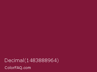 Decimal 1483888964 Color is a dark rose color and the nearest color is Claret #7f1734. Hex code #801638 and RGB value is rgb(128,22,56). In RGB color space, this color is composed of 50% red, 9% green, 22% blue, In CMYK color space, this color is composed of 0% cyan, 83% magenta, 56% yellow , 50% black , In HSL color space, this color has a hue angle of 341° , 71% saturation and 29% lightness.