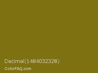 Decimal 1484032328 Color is a dark yellow color and the nearest color is Corn Harvest #8b6b0b. Hex code #807014 and RGB value is rgb(128,112,20). In RGB color space, this color is composed of 50% red, 44% green, 8% blue, In CMYK color space, this color is composed of 0% cyan, 13% magenta, 84% yellow , 50% black , In HSL color space, this color has a hue angle of 51° , 73% saturation and 29% lightness.