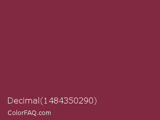 Decimal 1484350290 Color is a normal rose color and the nearest color is Solid Pink #893843. Hex code #812940 and RGB value is rgb(129,41,64). In RGB color space, this color is composed of 51% red, 16% green, 25% blue, In CMYK color space, this color is composed of 0% cyan, 68% magenta, 50% yellow , 49% black , In HSL color space, this color has a hue angle of 344° , 52% saturation and 33% lightness.