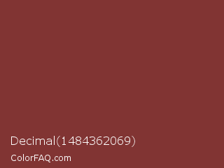 Decimal 1484362069 Color is a normal red color and the nearest color is Lotus #863c3c. Hex code #813433 and RGB value is rgb(129,52,51). In RGB color space, this color is composed of 51% red, 20% green, 20% blue, In CMYK color space, this color is composed of 0% cyan, 60% magenta, 60% yellow , 49% black , In HSL color space, this color has a hue angle of 1° , 43% saturation and 35% lightness.
