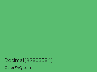 Decimal 92803584 Color is a normal green color and the nearest color is Fern #63b76c. Hex code #59bd70 and RGB value is rgb(89,189,112). In RGB color space, this color is composed of 35% red, 74% green, 44% blue, In CMYK color space, this color is composed of 53% cyan, 0% magenta, 41% yellow , 26% black , In HSL color space, this color has a hue angle of 134° , 43% saturation and 55% lightness.