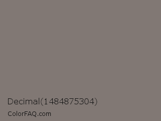 Decimal 1484875304 Color is a normal orange color and the nearest color is Empress #817377. Hex code #817874 and RGB value is rgb(129,120,116). In RGB color space, this color is composed of 51% red, 47% green, 45% blue, In CMYK color space, this color is composed of 0% cyan, 7% magenta, 10% yellow , 49% black , In HSL color space, this color has a hue angle of 18° , 5% saturation and 48% lightness.