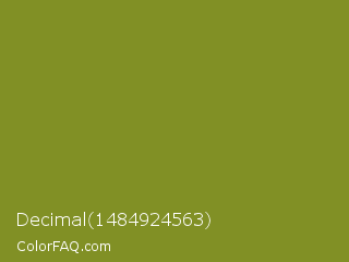 Decimal 1484924563 Color is a normal yellow color and the nearest color is Wasabi #788a25. Hex code #819025 and RGB value is rgb(129,144,37). In RGB color space, this color is composed of 51% red, 56% green, 15% blue, In CMYK color space, this color is composed of 10% cyan, 0% magenta, 74% yellow , 44% black , In HSL color space, this color has a hue angle of 68° , 59% saturation and 35% lightness.