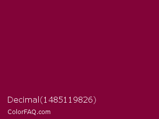Decimal 1485119826 Color is a dark rose color and the nearest color is Siren #7a013a. Hex code #820338 and RGB value is rgb(130,3,56). In RGB color space, this color is composed of 51% red, 1% green, 22% blue, In CMYK color space, this color is composed of 0% cyan, 98% magenta, 57% yellow , 49% black , In HSL color space, this color has a hue angle of 335° , 95% saturation and 26% lightness.