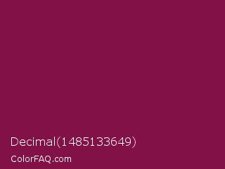 Decimal 1485133649 Color is a dark rose color and the nearest color is Rose Bud Cherry #800b47. Hex code #821147 and RGB value is rgb(130,17,71). In RGB color space, this color is composed of 51% red, 7% green, 28% blue, In CMYK color space, this color is composed of 0% cyan, 87% magenta, 45% yellow , 49% black , In HSL color space, this color has a hue angle of 331° , 77% saturation and 29% lightness.