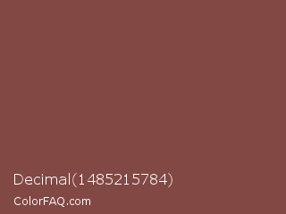Decimal 1485215784 Color is a normal red color and the nearest color is Tuscan Red #7c4848. Hex code #824844 and RGB value is rgb(130,72,68). In RGB color space, this color is composed of 51% red, 28% green, 27% blue, In CMYK color space, this color is composed of 0% cyan, 45% magenta, 48% yellow , 49% black , In HSL color space, this color has a hue angle of 4° , 31% saturation and 39% lightness.