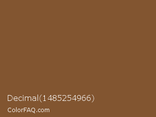 Decimal 1485254966 Color is a normal orange color and the nearest color is Potters Clay #8c5738. Hex code #825530 and RGB value is rgb(130,85,48). In RGB color space, this color is composed of 51% red, 33% green, 19% blue, In CMYK color space, this color is composed of 0% cyan, 35% magenta, 63% yellow , 49% black , In HSL color space, this color has a hue angle of 27° , 46% saturation and 35% lightness.