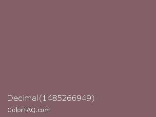 Decimal 1485266949 Color is a normal red color and the nearest color is Deep Taupe #7e5e60. Hex code #826065 and RGB value is rgb(130,96,101). In RGB color space, this color is composed of 51% red, 38% green, 40% blue, In CMYK color space, this color is composed of 0% cyan, 26% magenta, 22% yellow , 49% black , In HSL color space, this color has a hue angle of 351° , 15% saturation and 44% lightness.