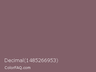 Decimal 1485266953 Color is a normal rose color and the nearest color is Falcon #7f626d. Hex code #826069 and RGB value is rgb(130,96,105). In RGB color space, this color is composed of 51% red, 38% green, 41% blue, In CMYK color space, this color is composed of 0% cyan, 26% magenta, 19% yellow , 49% black , In HSL color space, this color has a hue angle of 344° , 15% saturation and 44% lightness.